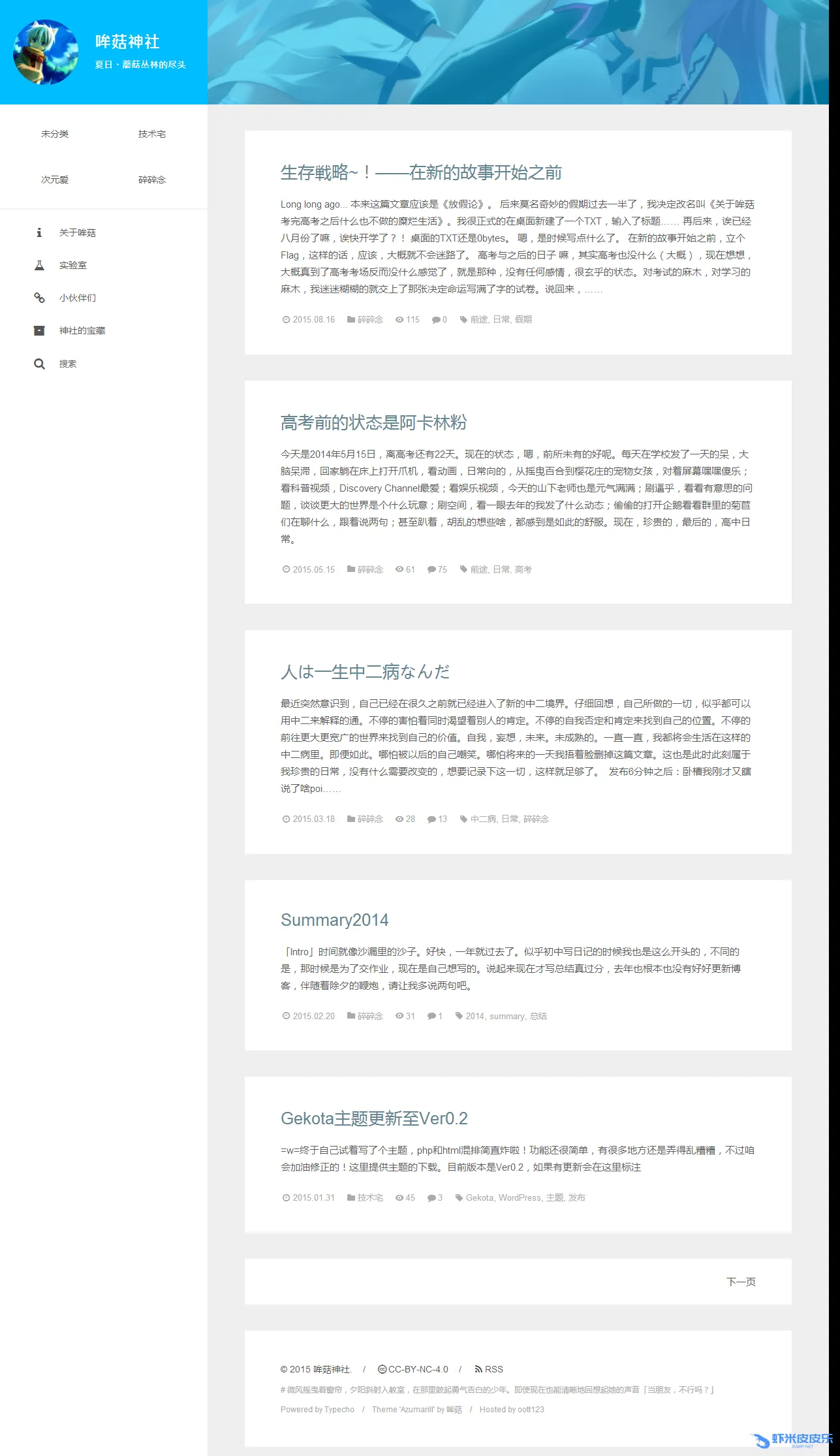 A typecho theme with flat designs and azure colour.