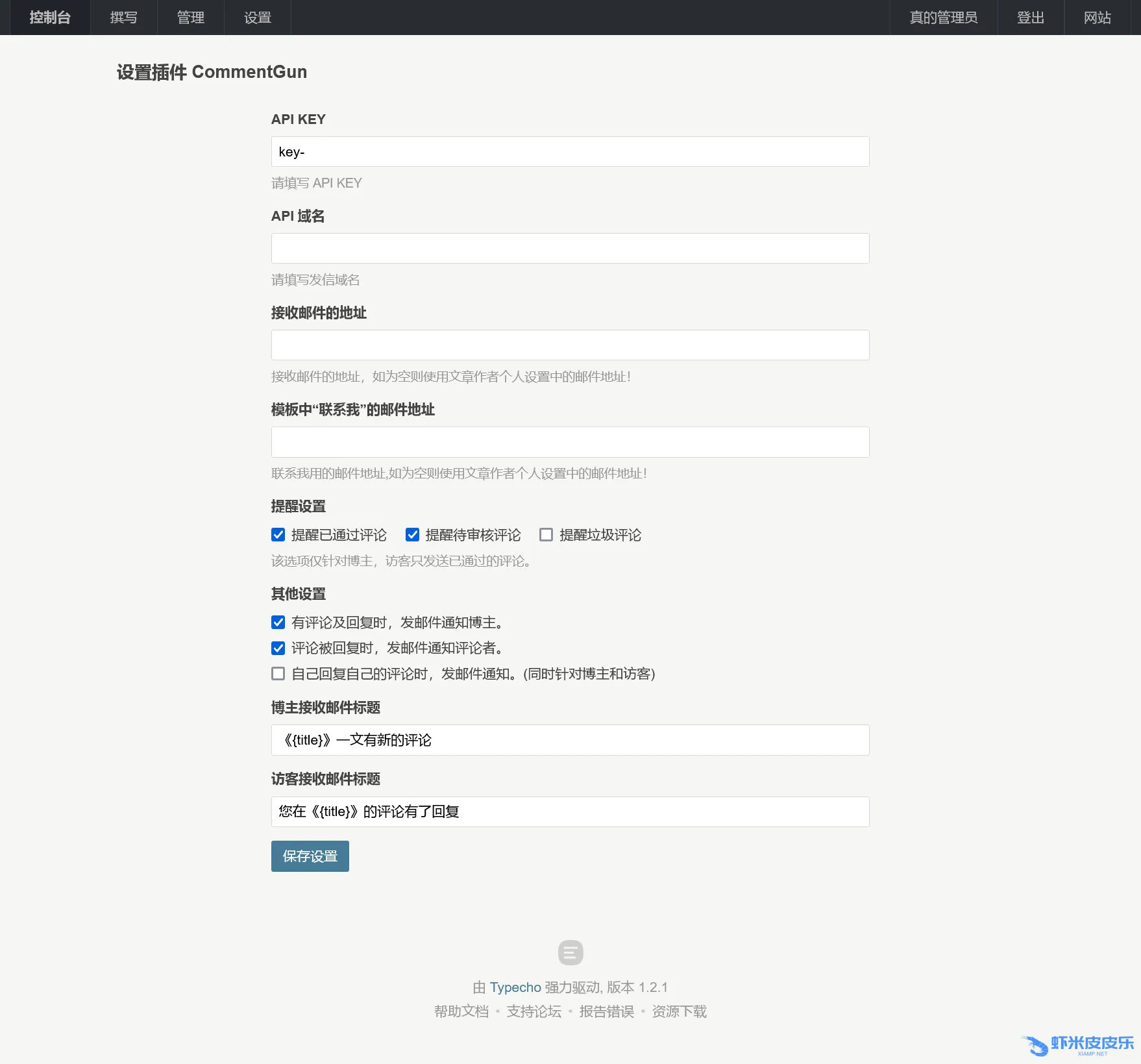 CommentNotifier: 目前最流行的 Typecho 博客评论邮件提醒插件