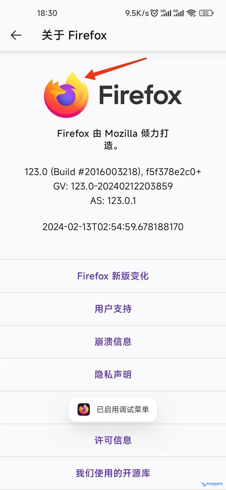 - 进入火狐设置,关于火狐页面,点击火狐图标5次,进入调试模式