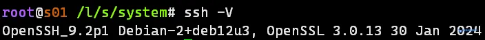 OpenSSH_9.2p1 Debian-2+deb12u3, OpenSSL 3.0.13 30 Jan 2024