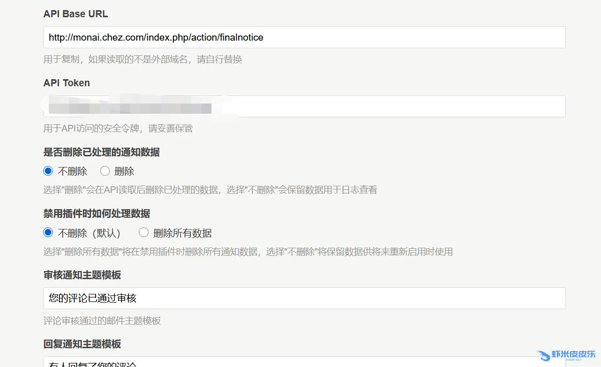 - 然后启用插件,回得到 API 端点和 API Token(如插件截图所示)。