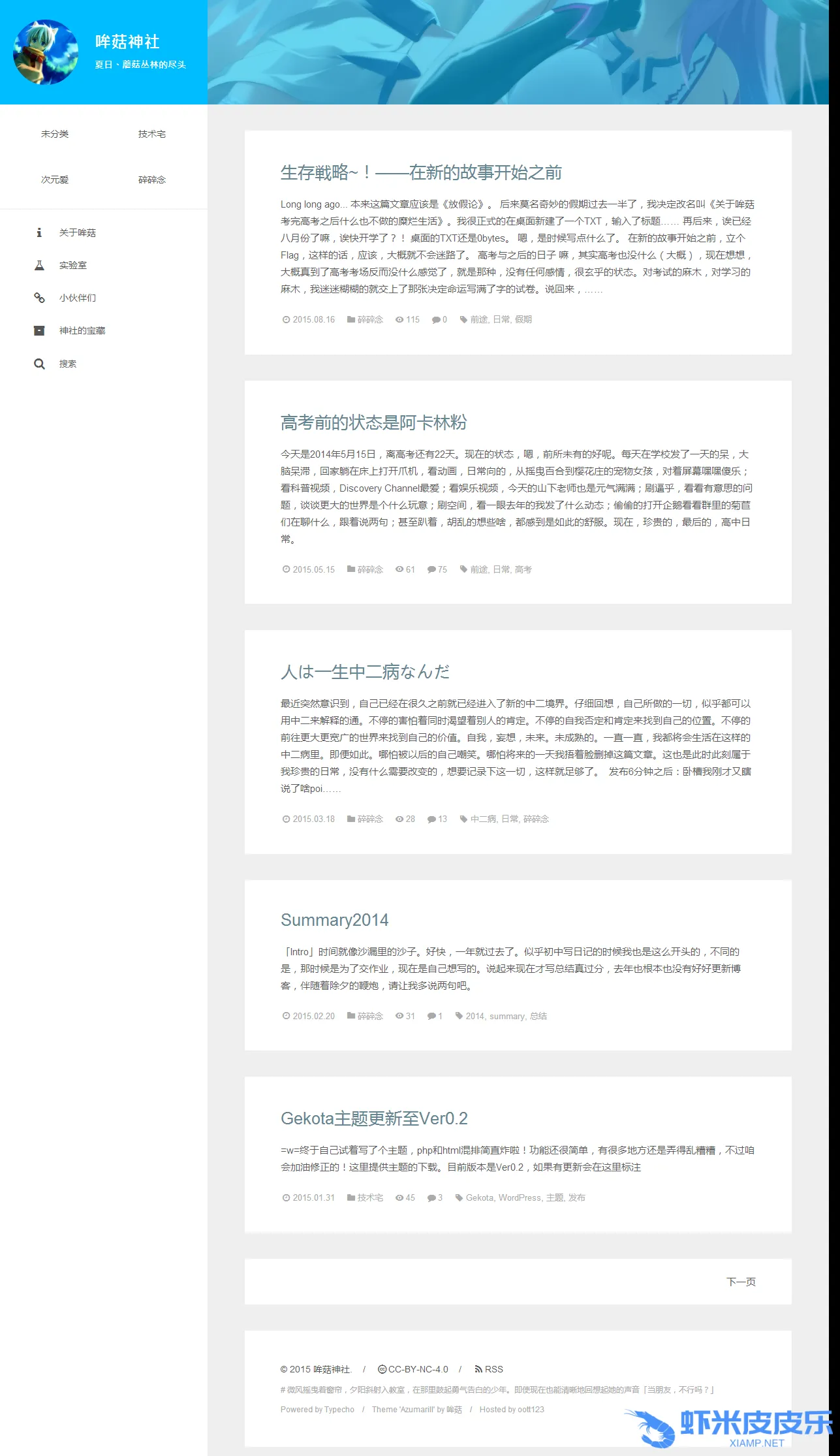 A typecho theme with flat designs and azure colour.