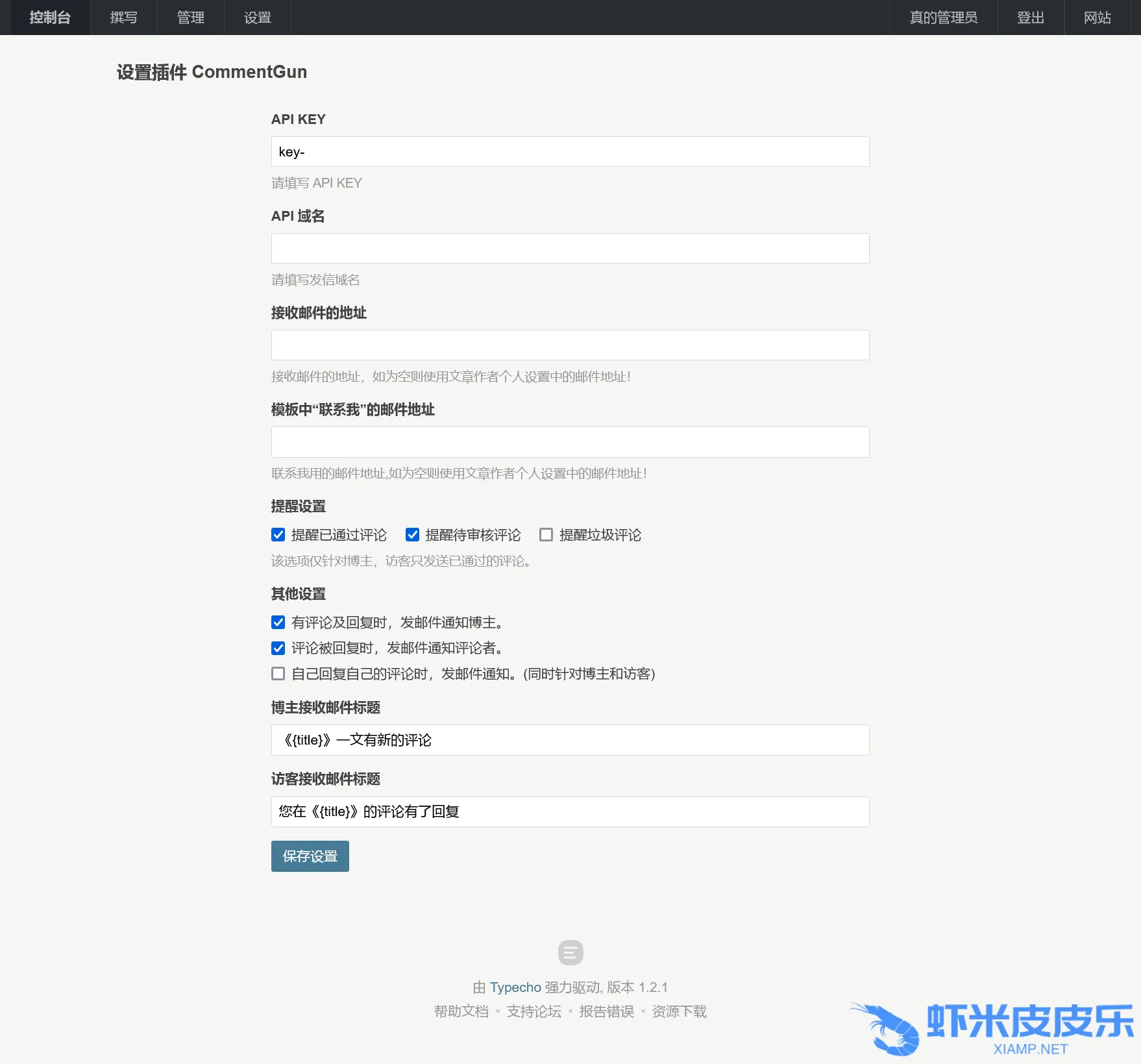 Typecho 上使用最广泛的插件是 CommentToMail,最早由 DEFE 开发,后来由 Byends Upd 接手。该插件通过常用的 PHP Mail,SendMail 或者 SMTP 来发送邮件。