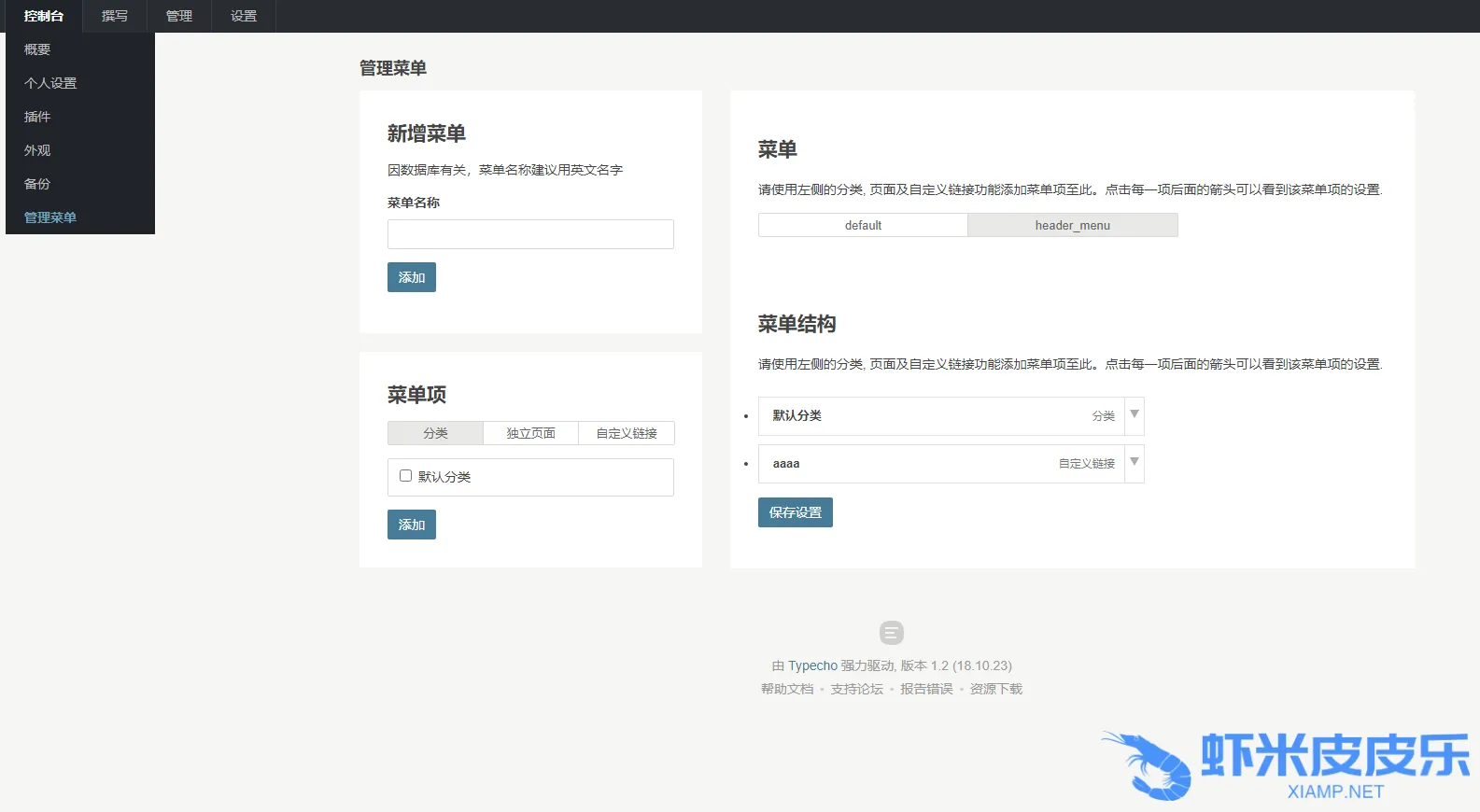 2. 进入主菜单 控制台->菜单管理 即可看到菜单设置页面。