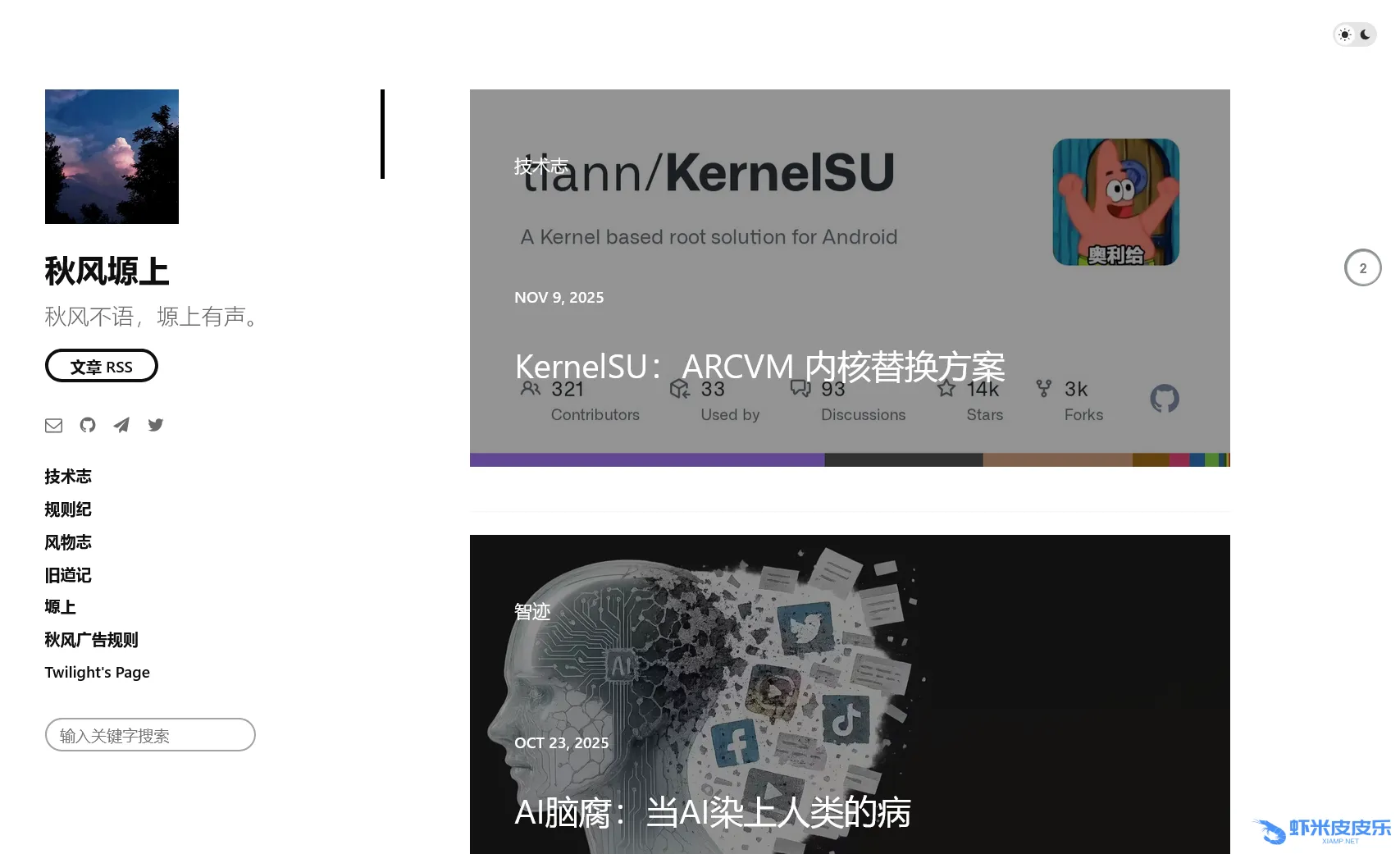 • 原主题中亮色 / 暗色模式数据保存在 sessionStorage 中,关闭浏览器后清除;移植时改为使用 localStorage,下次打开时仍保持此前的设置。