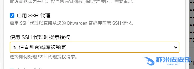 然后往下滚动打开SSH功能,下拉框我是选择直到密码库被锁定,这样就不用总是点批准