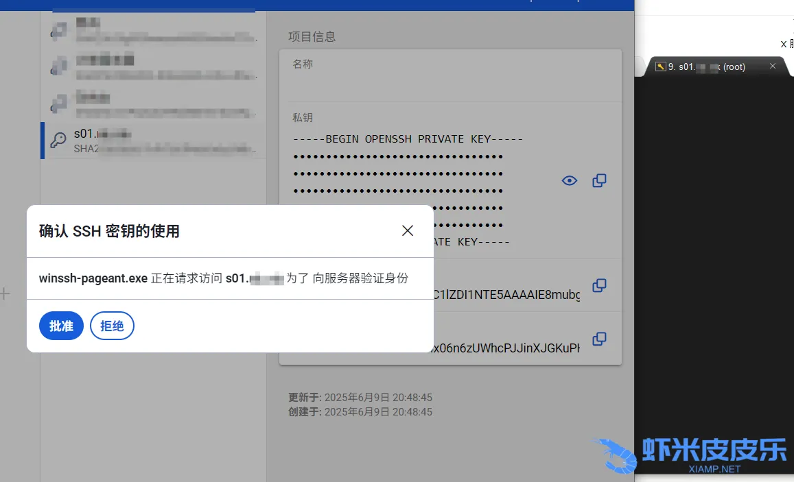 双击会话尝试登录,正常的话 Bitwarden 会弹出来使用 SSH Key 的申请。